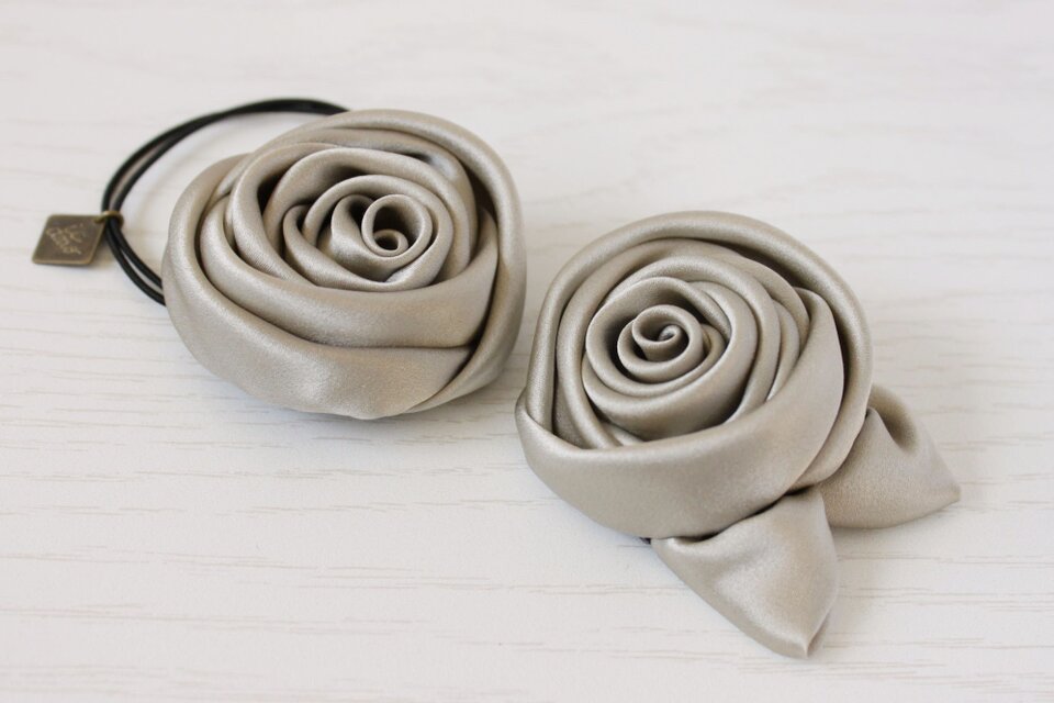 親子で!ローズのコサージュとヘアゴムのセット<シルクサテン/グレージュ>CY061-F5 HY061-F5