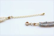 白とグレーの淡水パールをふんだんに使っており、とても贅沢な一本です。