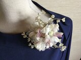 鈴蘭を散りばめて華やかさのあるコサージュです。