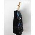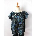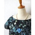 表身頃はリバティ、裏は黒のサークルレースコットン。