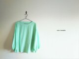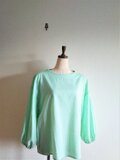 ボトルネックのブラウス*綿ローン*ペールグリーン*ボリュームスリーブ