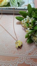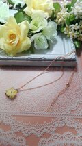 ハワイアンフラワーのプルメリアを、シャワー台に編みつけ、ゴールドのチェーンで仕上げた可愛いらしいペンダントタイプのネックレスです。
