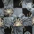 【和柄】はんなりと大胆なティアードスカート(市松に家紋と菊:黒)