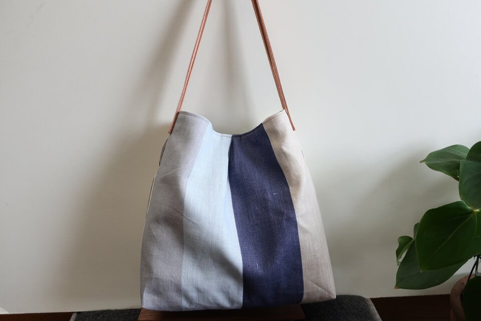 素材感があり爽やかな雰囲気のトートバックです。