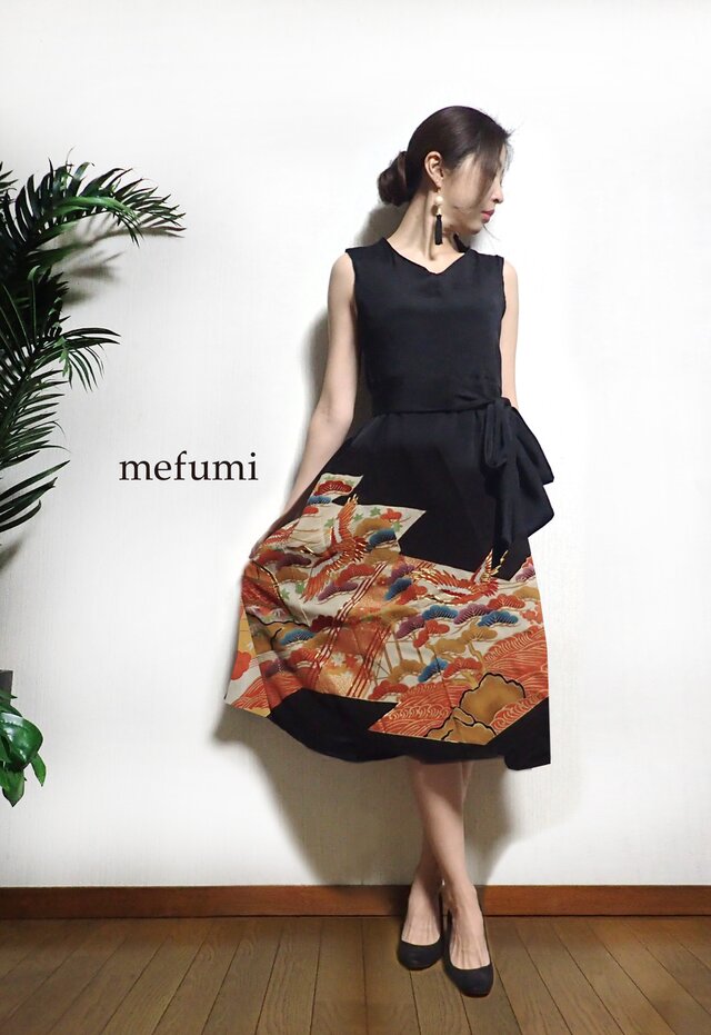受注制作 ✳︎1点物 ✳︎ アンティーク 着物リメイク 鶴松 フォーマルワンピース ✳︎ サイズ 9号/11号/13号