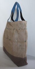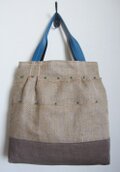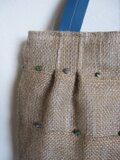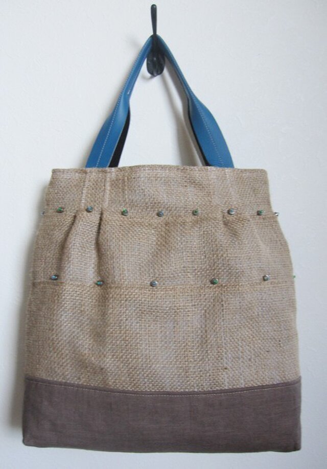 青い持ち手とビーズの色が自然な麻色と良く合います。