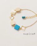 【square】 ターコイズ&シェル&ウッド ブレスレット