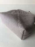 グレー色のリネン生地に生地と同じような色の刺繍糸でアジュール刺繍をしました。