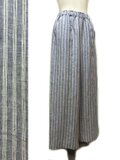 【パンツ】ゆったりワイドなガウチョ・パンツ(ロングパンツ/L) リネン ストライプ