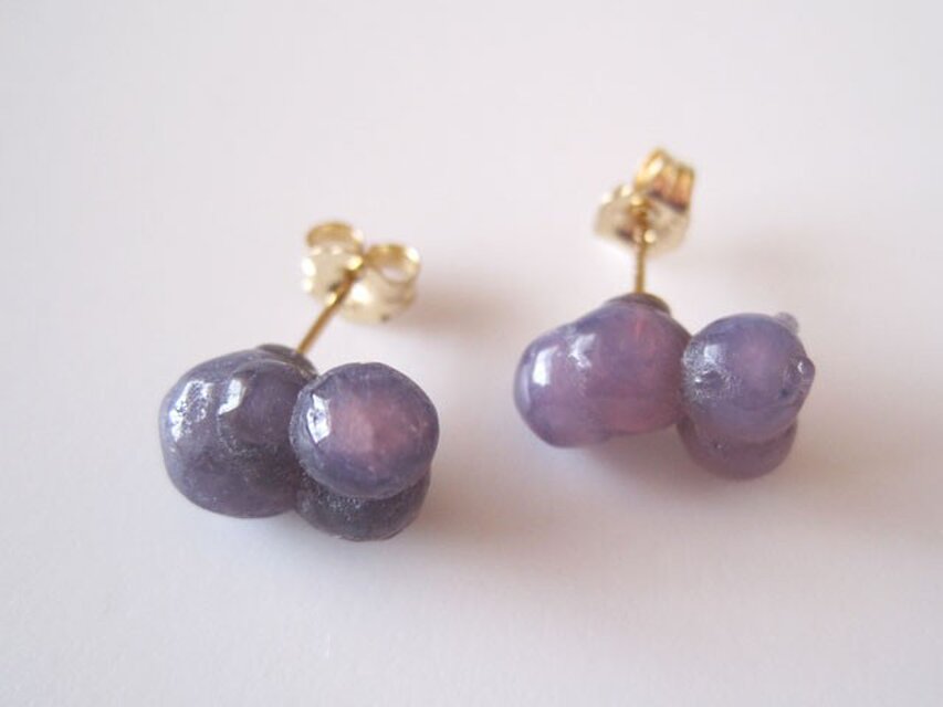 耳たぶに小さな葡萄が実ったような可愛らしいピアスです。