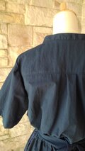 ★オーダー品★ お仕事着・ネイビー・スタンドカラー・ワンピース・二の腕が隠れる半袖・ポケット