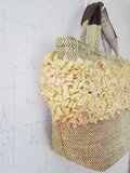 正絹の着物を裂いて、その布を緯糸として織りあげバッグに仕立てました。