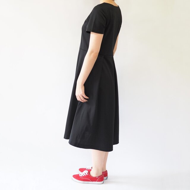 ┗ポケットやファスナー、ボタンなど余計な装飾を一切はぶき、シンプルを極めたワンピースです。その分小物やアクセサリー、着る人を引き立てます。