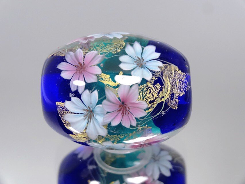 バーナーワークの技法で制作した、手作りのとんぼ玉です。