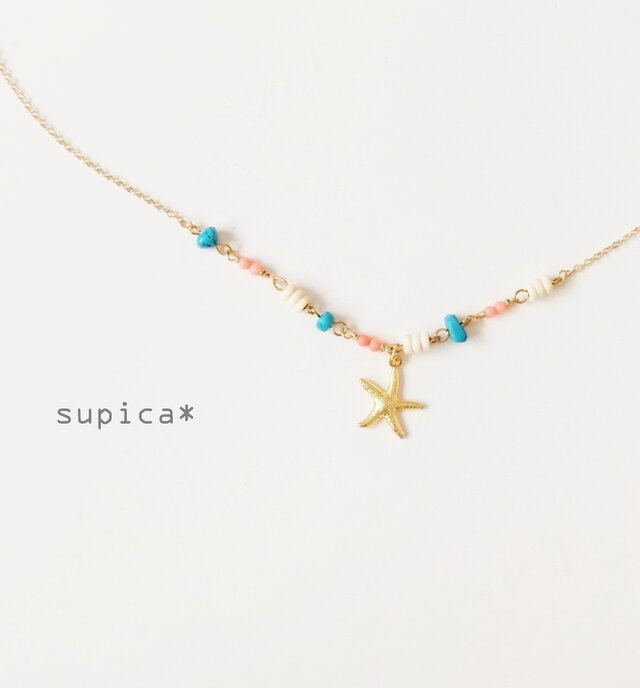 素材◇ひとで、白ウッド、ターコイズさざれ石、ピンクサンゴ