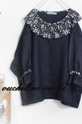 襟部分にはリバティの巻きロックフリルをたっぷり入れ華やかなスタイルに仕上げました。