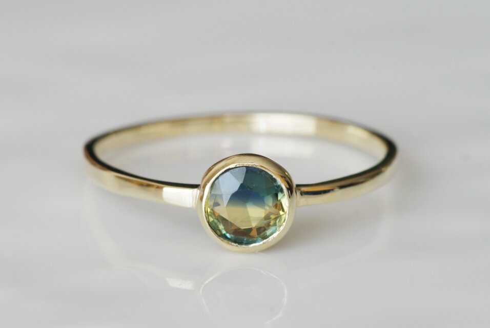 ラウンドカットのバイカラーサファイアになります。