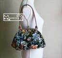 ヨーロッパから直輸入されたゴブラン織りの布地を使って制作した、ふんわりしたシルエットがかわいらしいがまぐちバッグです。