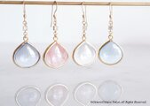 【14KGF】GlossyTeardrop Glass,CZ Earrings