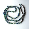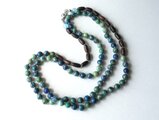 宇宙から見た地球のようなブルーやグリーンが印象的な、アズロマラカイトという石のロングネックレスです
