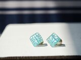 *シャイニーアクアブルー*ブロックガラス風イヤリング