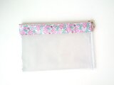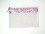 リバティの人気生地(ラミネートつや無)、ペイザンヌ Paysanne(ピンク)で中身が見えるクリアポーチを作りました。