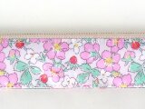 生地の色は地の色が、薄いピンク、花の色がピンクとホワイト、イチゴの実の色が赤、葉の色がライトグリーンです。