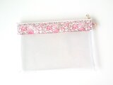 リバティの人気生地(ラミネートつや無)、フェリシテ Felicite(レッドピンク)で中身が見えるクリアポーチを作りました。