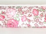 リバティの生地の柄は、とても魅力的なものが多く、その代表的な柄といっても過言ではないフェリシテ。 ぷっくらしたバラが愛らしい柄です。バラの色が淡いレッド×桜色のピンク、小さなお花が、ライトグレー、葉の色がミントグリーンです。