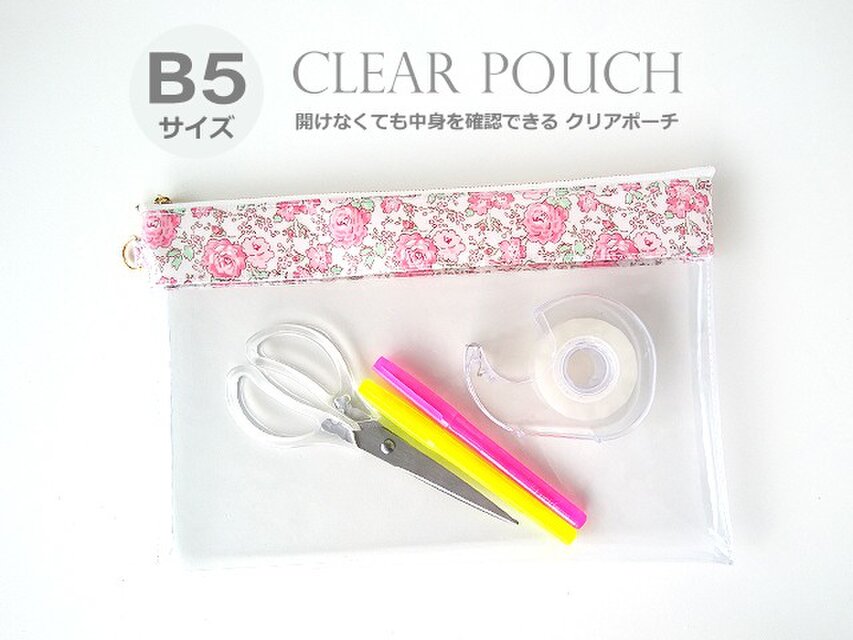 リバティ B5サイズ 見える クリアポーチ (30) フェリシテ レッドピンク