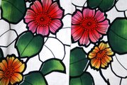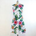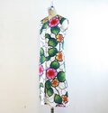 カラフルで華やかな花模様の浴衣生地で前あきのボタンワンピースを作りました。