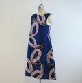 花火模様の浴衣生地でノースリーブワンピースを作りました。首周り袖周りがゆったりめで、オーバーサイズで着ていただけるシンプルなワンピースです。