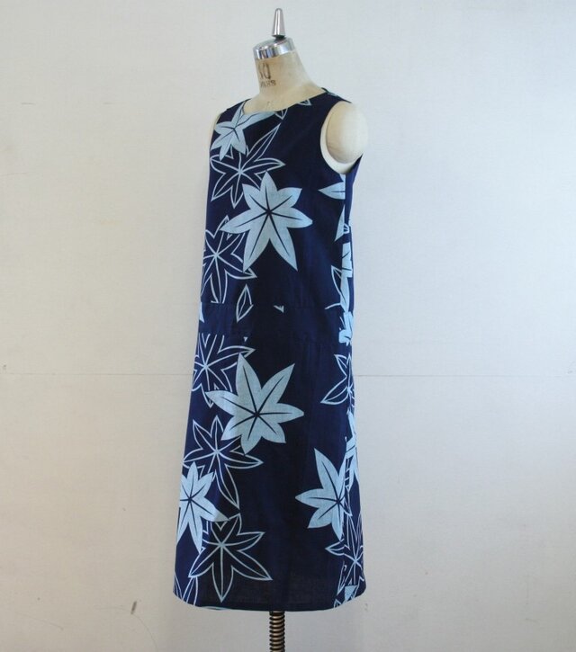 青紅葉模様の浴衣生地でノースリーブワンピースを作りました。