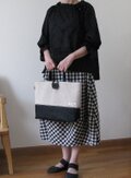 チェック柄のぶれなさと袖口のリボンとのバランスが素敵なブラウスでした。