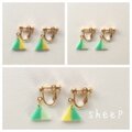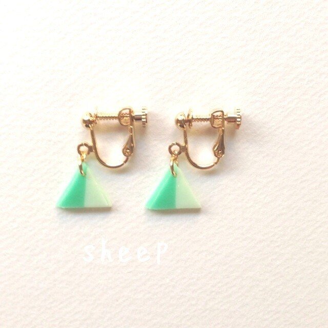 バイカラーさんかくイヤリング(ピアス可)(グリーン)