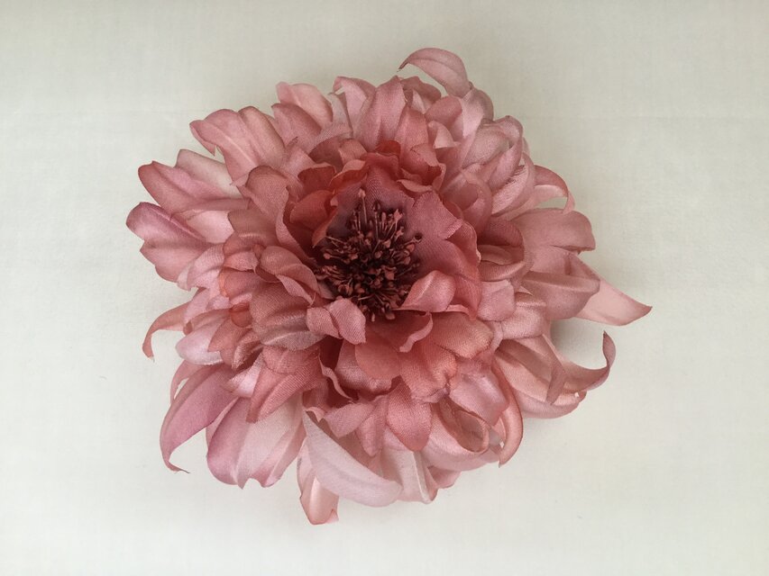華やかさのある雰囲気のダリアのコサージュに作りました。