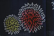 花火模様の浴衣生地で前あきのボタンワンピースを作りました。