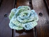 ストールと同じ糸でバラのブローチも作りました。