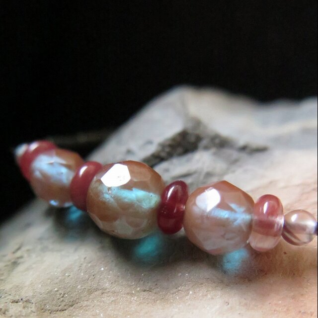 アンティーク サフィレット &メタルビーズ黒 +アンデシン ネックレス 百世 momotose(西)