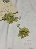 染花(布花)で作った、紫陽花のアナベルイメージした左右のデザインの異なるアシンメトリーなデザインのイヤリング(ピアス)です。