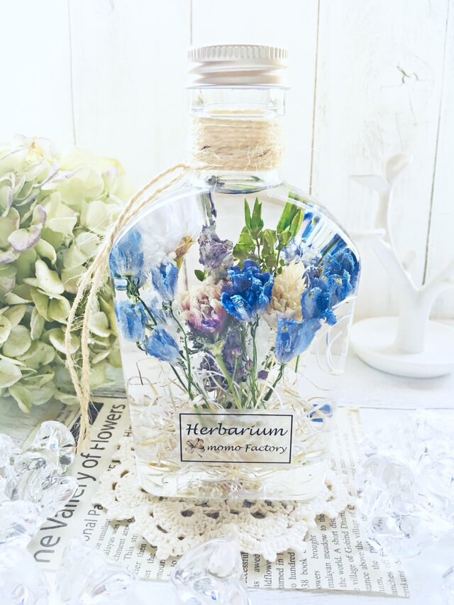 ハーバリウムとは植物標本のことで、特別に配合されたオイルにドライフラワーやプリザーブドフラワーを浸した植物標本です