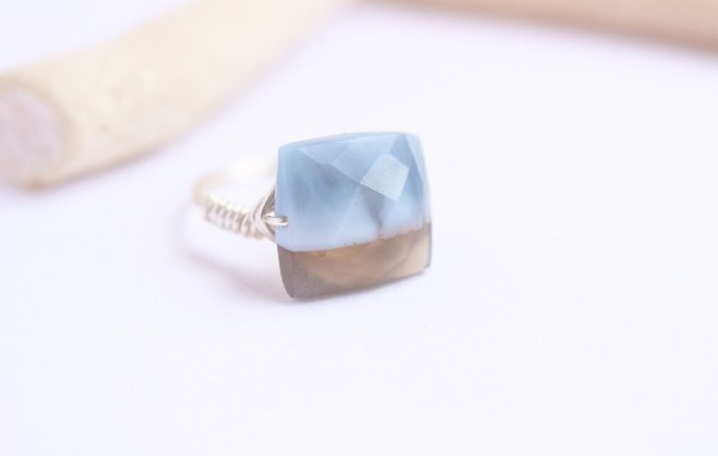 希少!ストライプブルーオパール Wire Ring
