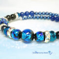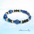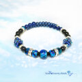 オニキスや夜空のようなブルーゴールドストーンの煌き、発色の綺麗なラピスラズリのパールなど、魅力的なビーズを集めたブレスです。