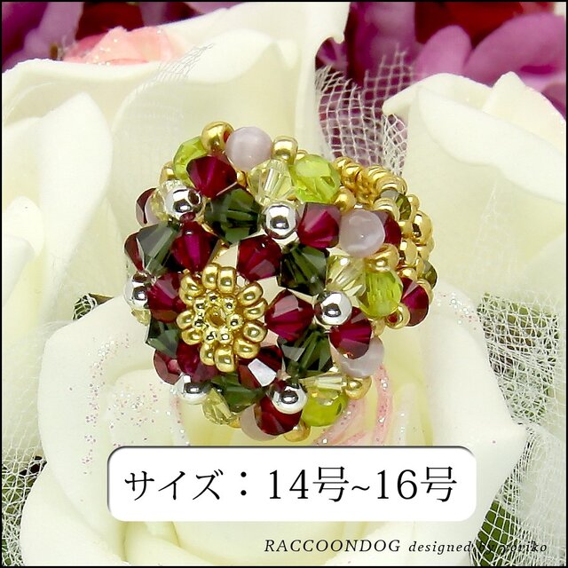 ビーズ,リング,コスチュームジュエリー,ビーズアクセサリー,ライトアメジスト,キャッツアイ,ジョンキル,スワロフスキー,トルマリン,オリバイン,ルビー,レッド,花火