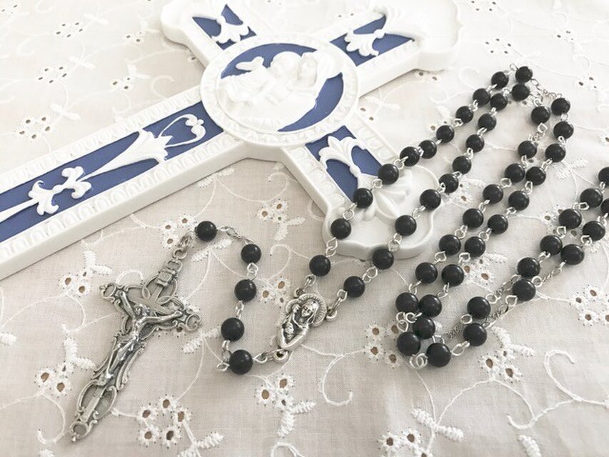 遅くなり大変申し訳ありませんm(_ _)m いつもとても素敵なロザリオをありがとうございます(*^^*)今回もセンターメダイと十字架と石のセンスがとても良くバランスが素敵です!大切にします。ありがとうございますまたよろしくおねがいします。