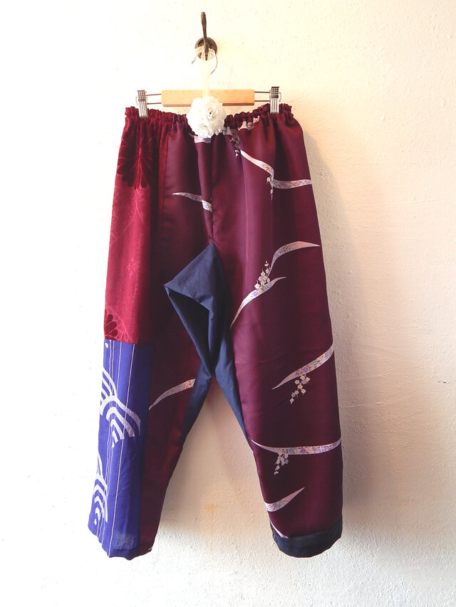 古き良き日本の伝統的なテキスタイルをもっと身近に、気軽に着用して頂けるようラフなゆるさが癖になるサルエルパンツに仕立てました。