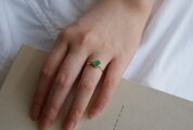 とにかく可愛いリングです。 色、形、大きさ、どれをとっても素晴らしく、つけると指が明るくなります。 子供の時に憧れた指輪を手にした感じで、とても幸せです。