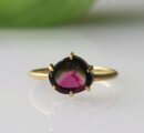 深めカラーのウォーターメロントルマリンのK18製リングです。
