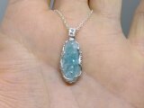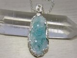 クリソコラを覆うように成長したドゥルジークォーツ、内部の鮮やかな水色が映えるペルー産クリソコラドゥルジークォーツを銀のレースで飾った清涼感ある925ペンダント*夏の定番素材レースそのものを銀に置換鋳造したものでレース素材による細かいテクスチャーも綺麗。。こちらは黒化防止ロジウムコーティングを施してあります*裏面には母岩が見られる染色モノとは一線を画すレアストーン。。唯一無二の結晶による1点モノです*925/ロジウムチェーン40㎝付き(長さのご希望がございましたら承ります)