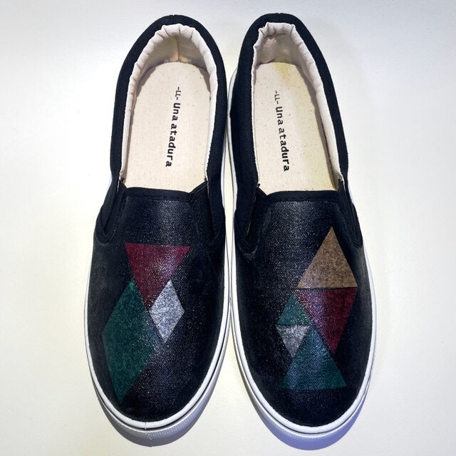 サーカス小屋のピエロスリッポン(ブラック)|幾何学アート×左右非対称デザイン|22.5〜25.5cm